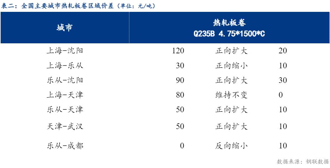从区域价差来看,华东与东北价差120元/吨,较上一交易日正向扩大20元/吨;华东与华南价差30元/吨,较上一交易日正向缩小10元/吨 ;华南与华北价差为50元/吨,较上一交易日正向扩大10元/吨。