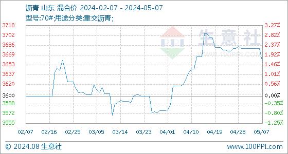 5月7日,生意社沥青基准价为3680.86元/吨,与本月初持平。