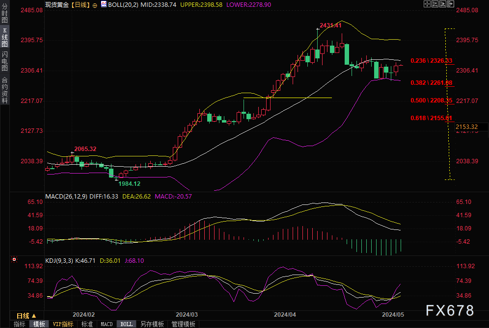 周二(5月7日)亚洲时段,现货黄金窄幅震荡,目前交投于2324.92美元/盎司附近。金价周一攀升近1%,此前美国就业数据不及预期,提振了美联储今年晚些时候可能降息的预期,美元应声走软,另外,哈马斯同意提议而以色列仍执意进攻拉法,地缘局势担忧情绪升温也给金价提供避险支撑。