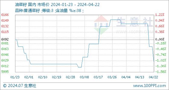 4月22日生意社油菜籽基准价为6072.00元/吨