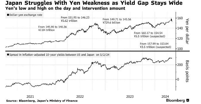 RBC Capital Markets驻新加坡的亚洲外汇策略主管Alvin Tan也认为,由于利率差距,日元可能会跌至160,如果美国利率不下降,“干预的影响将很快消散”。