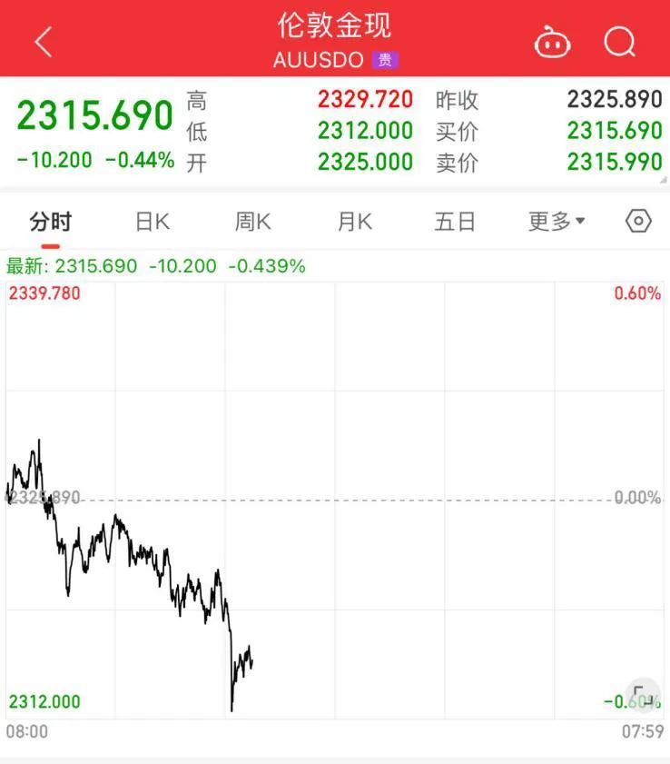 同花顺数据显示,在4月12日向上冲破2430美元/盎司后,伦敦金现开启震荡回调模式。5月3日一度触及2277.7美元/盎司,其间累计最大跌幅超6%。截至5月7日17时,伦敦金现徘徊在2300美元/盎司附近。