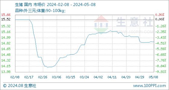 5月8日,生意社生猪基准价为14.87元/公斤,与本月初(14.85元/公斤)相比,上涨了0.13%。