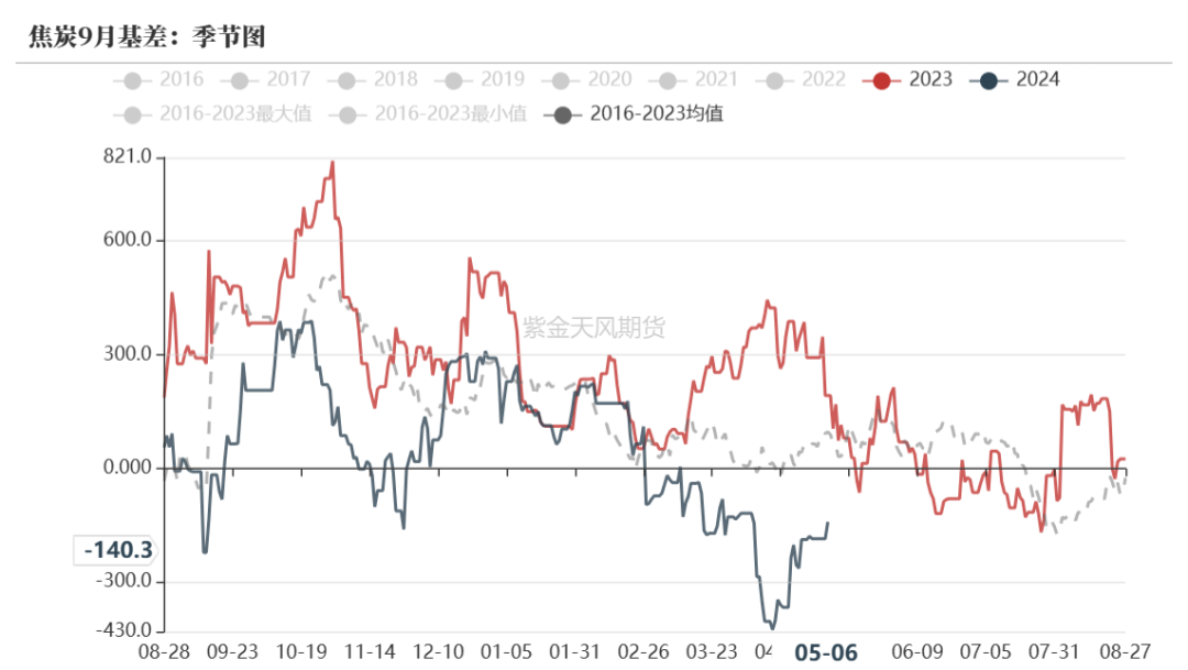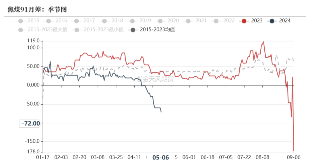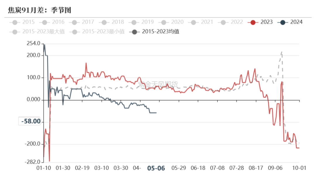 焦炭四轮涨价落地后盘面仍体现一轮半升水,9-1月差走弱。