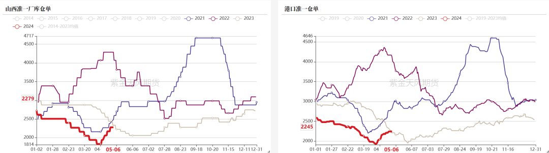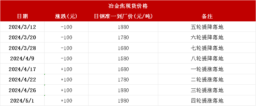 日照港准一级焦仓单价格约在2250元/吨左右,山西准一厂库仓单在四轮提涨落地后在2280元/吨附近;