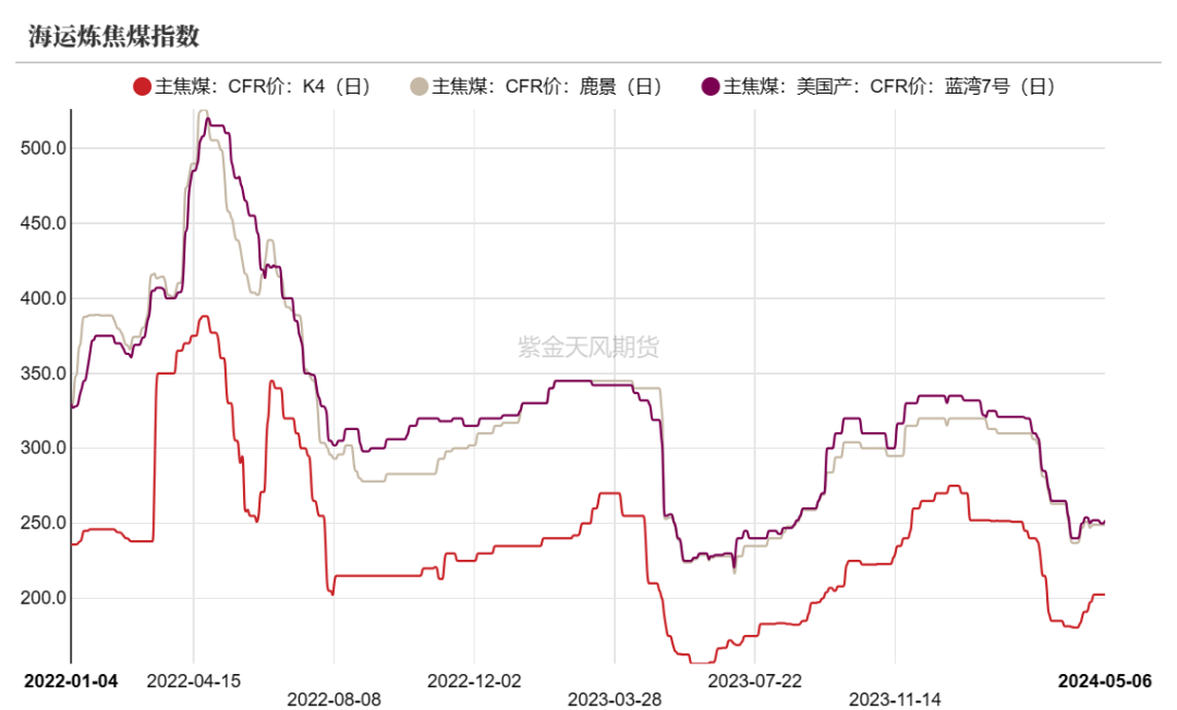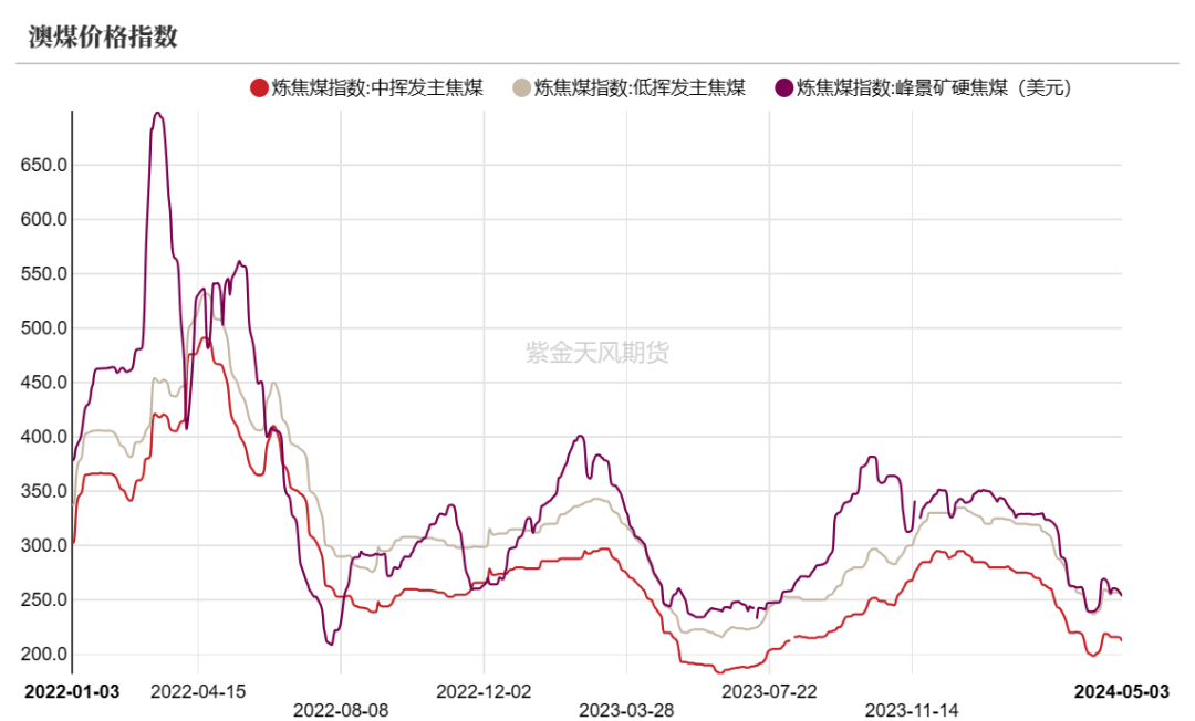 海外需求表现一般,成交清淡,澳洲峰景矿最新报价254.5美元/吨,较节前下跌约6美元/吨;俄罗斯炼焦煤偏强运行,俄主焦煤K4报价稳定在205美元/吨,较节前小幅上涨。