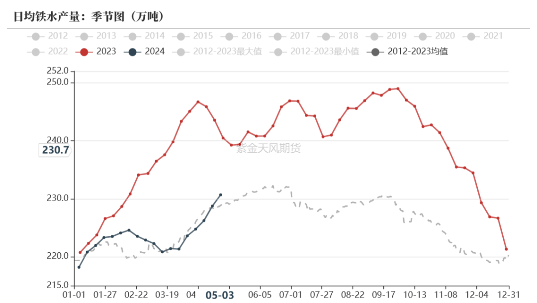 铁水产量回升至230以上水平,同比在偏低水平;目前钢厂利润持续回升,高炉仍在复产进程中,5月铁水预计比4月回升。