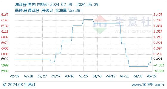 5月9日生意社油菜籽基准价为6008.00元/吨