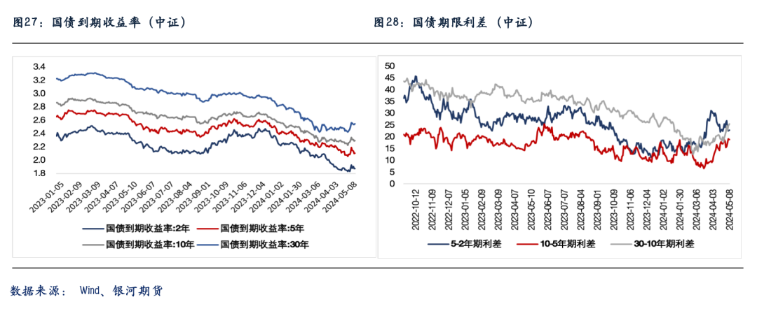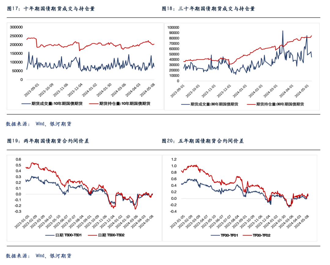 资金价格下行受阻,昨日中短期限期债合约表现偏弱,长端则受股债跷跷板效应的影响反而相对偏强。不过整体而言,盘面波动较前几个交易日有所下降。持仓方面,移仓换月持续,并可能主要由空头主导,从而带动当季与下季合约价差继续走阔。此外,现券尾盘市场关于发债和地产需求端政策放松的传闻再起,收益率出现普升。