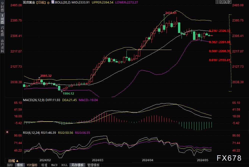 Valencia表示,如果买家希望继续挑战历史高点,那么他们需要攻克4月26日的高点,即最新周期高点2352美元/盎司。一旦突破这一水平,金价将瞄准2400美元/盎司关口,随后是4月19日高点2417美元/盎司和历史高点2431美元/盎司。