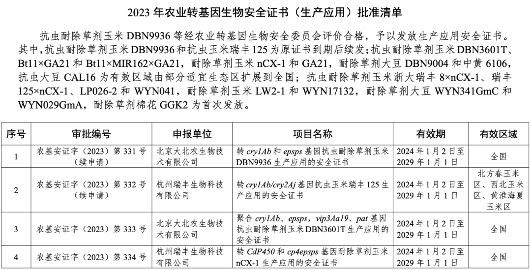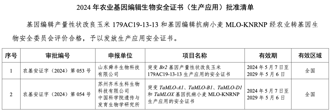 最新!1项转基因玉米,1项基因编辑玉米、小麦获得生物安全证书