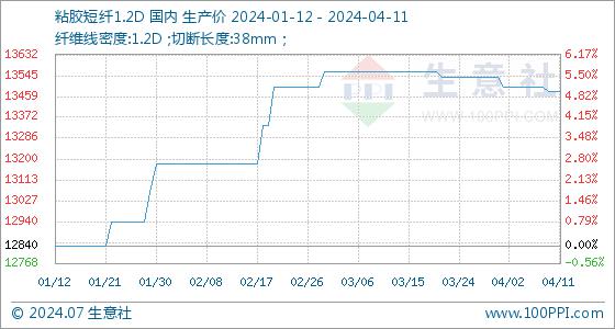 4月11日生意社粘胶短纤1.2D基准价为13480.00元/吨