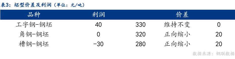 从品种价差来看,今日唐山钢坯与工字钢价差维持不变,与角钢、槽钢价差正向缩小。