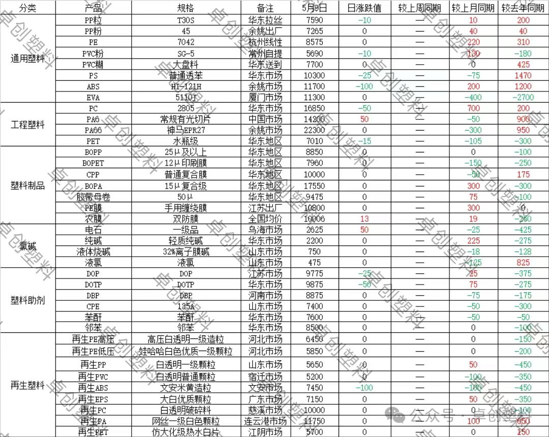 本周再生ABS市场成交偏淡,部分价格下跌。截至5月9日,文安ABS米黄造粒报价7400—7500元/吨,较4月30日价格下跌100元/吨,同比去年下跌450元/吨。本周市场整体货源供应尚可,部分厂家库存相对充裕,厂家灵活生产。进入传统淡季,需求平淡,下游厂家订单不多,按需采购为主,成交节奏不快,部分厂家让利走货。新料ABS弱势下跌,但新旧料价差尚可,仍一定程度支撑再生颗粒价格。市场价格略显混乱,实盘看货议价。