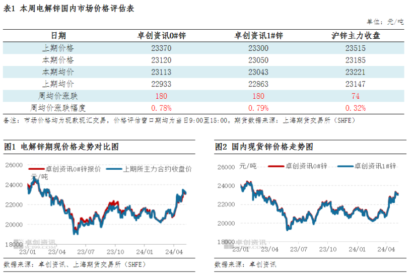 截至发稿卓创资讯现货0#锌锭周均价为23113元/吨,均价较上期涨0.78%;1#锌锭周均价23043元/吨,均价较上期涨0.79%。本周现货市场方面,市场交投氛围较浓,多由于贸易商票据利润乐观,部分贸易商收货增多,同时带动升贴水上涨,下游维持刚需补库节奏,周初价格低位叠加假期结束,部分下游补库情况增多。