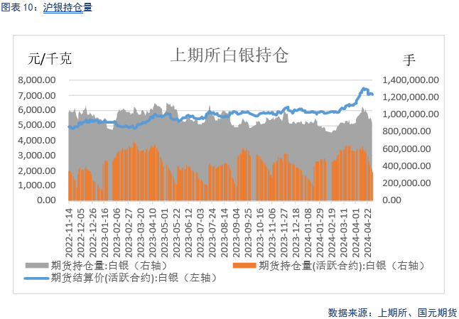 截止4月30日当周,沪金主力期货持仓量为109406手,较上周减少40289手;沪银主力期货持仓量为335518手,较上周减少128571手。
