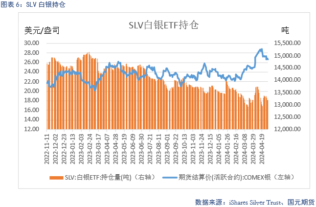 截止5月3日当周,SPDR持仓量为830.47吨,与前一周相比减少1.72吨,目前基金持仓基本维持稳定。截止5月3日当周,SLV持仓量为13189.61吨,与前一周相比减少145.0吨,目前基金持仓基本维持稳定。