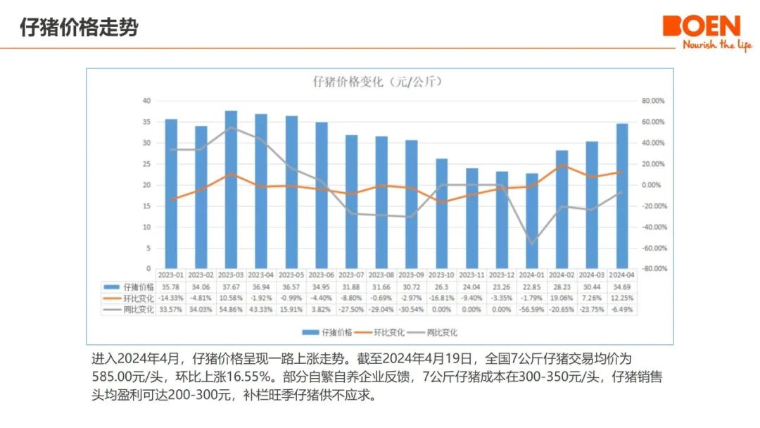 每年的3-6月,是仔猪补栏的传统旺季。然而今年有些不同,从1月末开始,仔猪价格便呈现一路上涨的走势。截至2024年4月25日,全国仔猪均价为37.72元/公斤,距离去年3月的最高价格38.09元/公斤也相去不远。