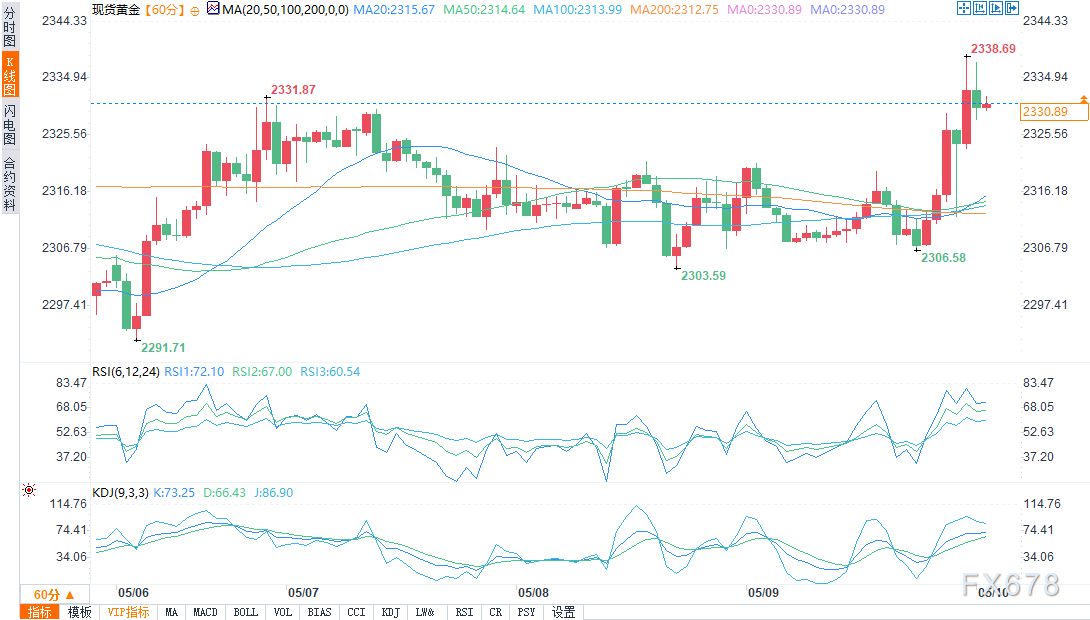 汇通财经APP讯——周四(5月9日),在英国央行表示未来更愿意降息以及数据显示美国劳动力疲软后,黄金价格走高。