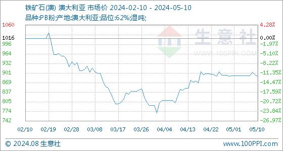 5月10日生意社铁矿石(澳)基准价为895.22元/吨