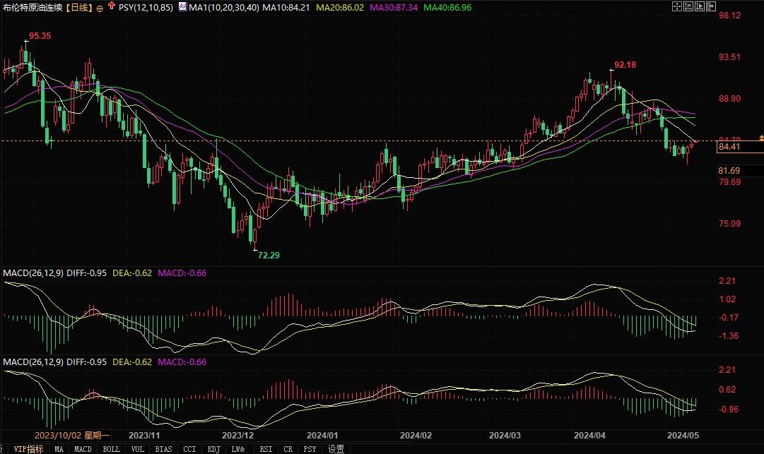 北京时间5月10日13:28,布伦特原油报84.44美元/桶