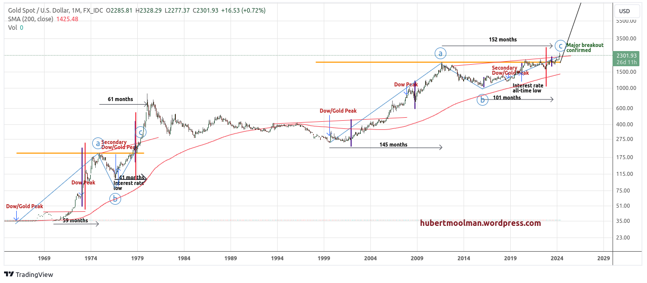 他解释称:“我已经标出了两种模式,表明最近的突破如何使黄金进入牛市的加速阶段。”