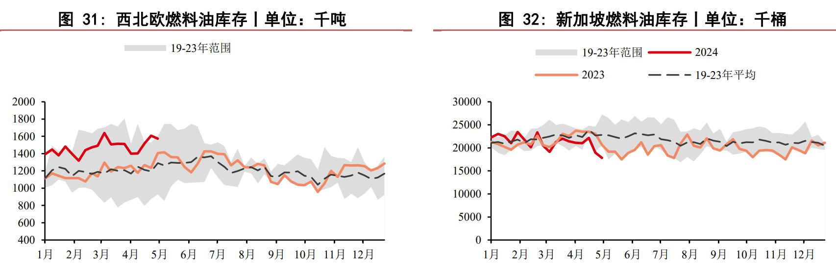6.截至5月6日当周,阿联酋富查伊拉港的成品油总库存为2027万桶,比一周前减少52.6万桶。其中轻质馏分油库存增加7.6万桶至752.4万桶,中质馏分油库存减少22.5万桶至324.1万桶,重质残渣燃料油库存减少37.7万桶至950.5万桶。