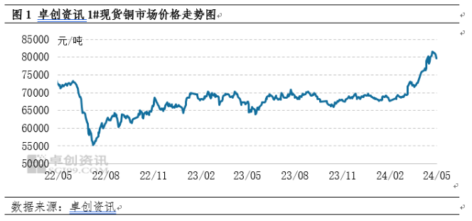 本周四卓创资讯现货铜价在79590元/吨,较上期跌1905元/吨,跌幅为2.34%,周均价为80477元/吨,较上期环比跌幅0.24%。