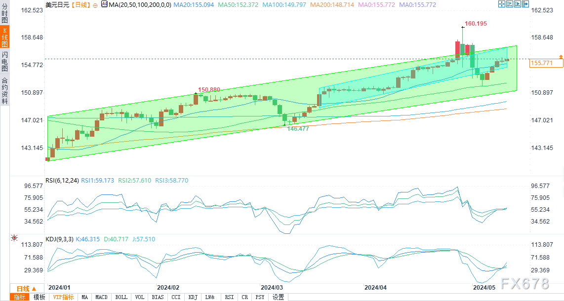 美元/日元周五上涨,初步逼近156.00关口。如果在接下来的交易中继续上涨,阻力位将出现在158.00,随后是160.00。交易员需要谨慎对待任何朝着这些水平的上行走势,避免盲目追随势头,因为东京方面有可能干预外汇市场以支撑日元,这可能会迅速导致该货币对暴跌。