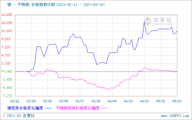 据生意社价差分析工具显示,镍和不锈钢价格相似。镍价影响不锈钢价格。