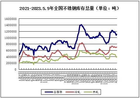 本周不锈钢库存合计110.78吨,较上周上涨2.6%,其中,冷热轧库存都上涨。