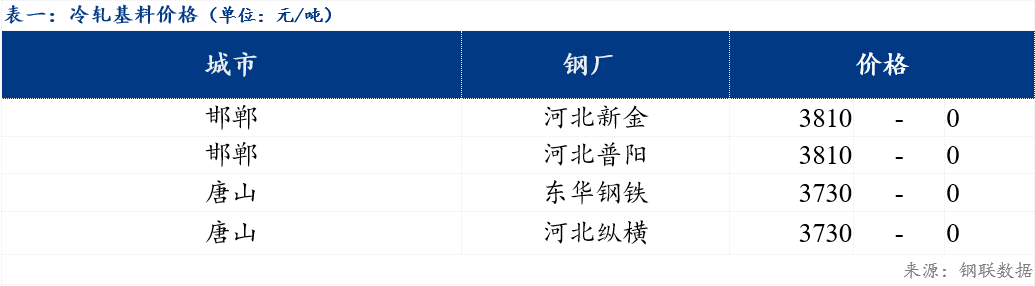 今日北方市场冷轧基料3.0*1010*CSPHC河北普阳价格为3810元/吨,较上一期价格持稳,河北纵横价格为3730元/吨,较上一期价格持稳 。镀锌方面,今日北方地区民营钢厂镀锌指导价格除东恒薄板价格下跌10元/吨之外,其余市场价格整体持稳运行;轧硬方面,今日冷轧硬卷价格持稳。市场方面,今日为五一假期最后一个调休日,且昨日热卷期货夜盘走势偏弱,致使今日市场整体交投氛围较冷清。具体价格来看,镀锌板卷市场除郑州、西安和哈尔滨城市下跌10-40元/吨外,其余城市均持稳。钢厂方面,宝钢股份出台6月份板材国内期货销售价格调整公告,其中普冷、镀锌基价不变,彩涂基价上调100元/吨。成交方面,据了解,今日整体成交继续缩量,部分客户反馈连询价的都偏少,北方地区大户单品种成交不到300吨,整体处于偏低水平。