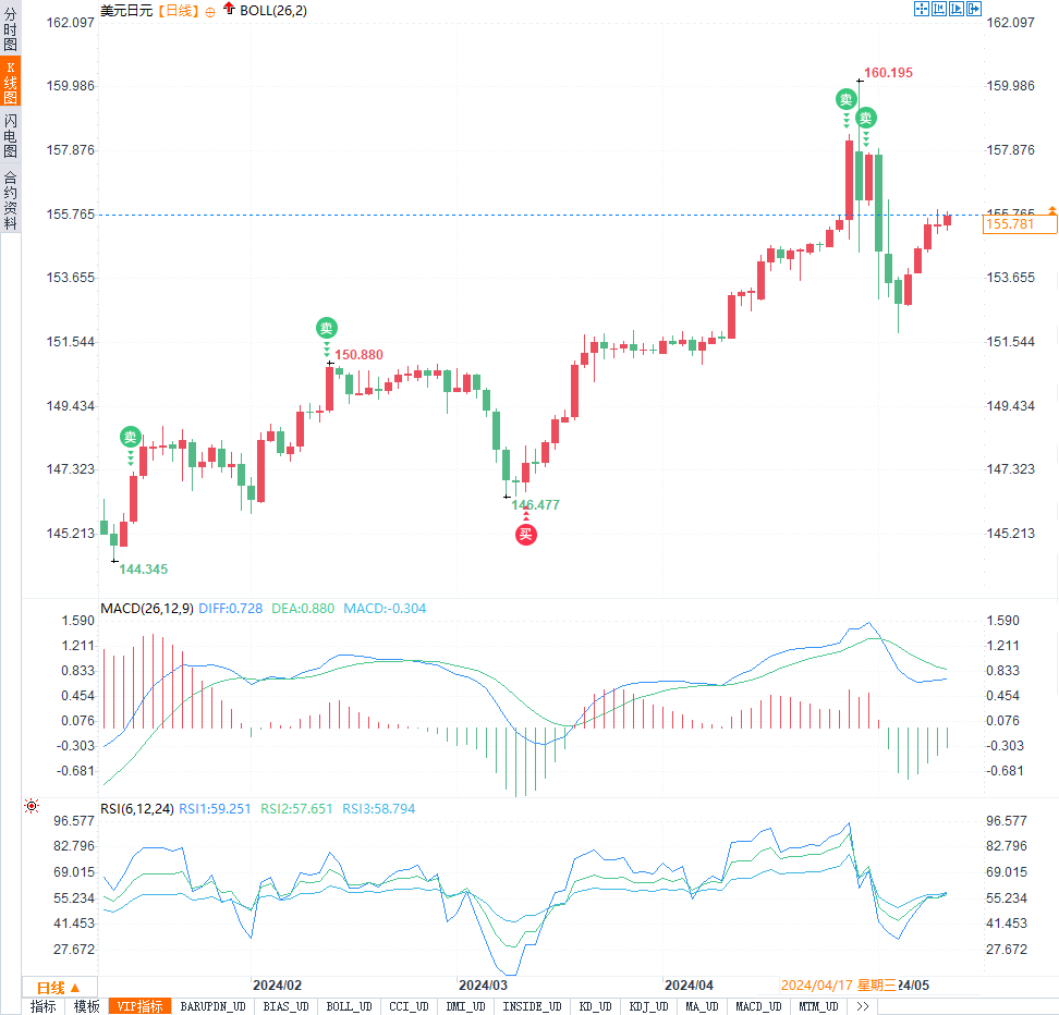 日元本周经历了先跌后稳的过程。尽管日本当局发出干预汇市的警告,但日元的下跌势头并未得到有效遏制。日本央行4月会议纪要显示,政策制定者的立场明显转为鹰派,这为日元提供了一定支撑。然而,日本财务大臣的警告和实际工资的下降,增加了市场对日本央行政策走向的不确定性。