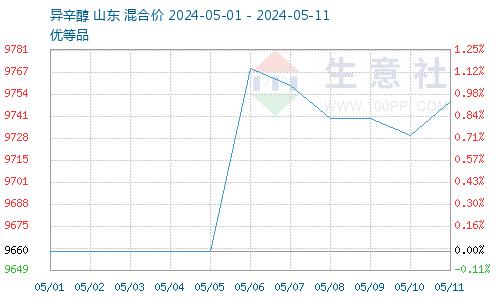 据生意社商品行情分析系统,截止5月11日,异辛醇报价9750元/吨,较5月1日异辛醇报价9660元/吨小幅上涨,涨幅0.93%。辛醇产品价格波动收窄。5月份,辛醇企业检修装置恢复,辛醇开工率提升至98%,较4月份开工率增加5个百分点。5月上旬辛醇供给增加,下游随用随采。5月中下旬,部分厂家辛醇装置计划停车检修。5月中下旬,国内辛醇供应预期减少,增塑剂装置开工基本稳定且维持相对高位,辛醇市场缺少连续上行动力。