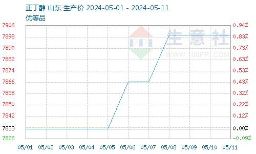 据生意社正丁醇商品行情分析系统,截止5月11日,正丁醇报价7900元/吨,较5月1日正丁醇价格7833.33元/吨小幅上涨,涨幅0.85%。节后山东地区正丁醇市场整体呈现小幅上涨后持稳运行态势。假期期间,正丁醇供需偏弱,市场整体安静运行,节后归来,部分下游小范围刚需补货,正丁醇市场重心小幅上行。后市预期正丁醇市场整体持稳盘整运行。