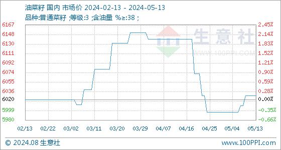 5月13日生意社油菜籽基准价为6028.00元/吨
