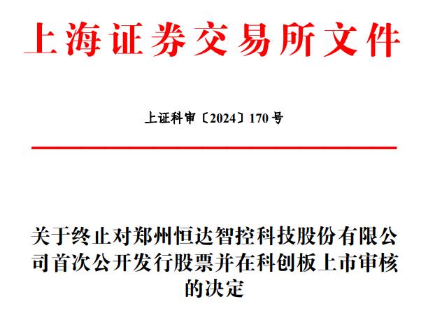 中国经济网北京5月13日讯据上交所官网消息,上交所决定终止郑州恒达智控科技股份有限公司(以下简称“恒达智控”)首次公开发行股票并在科创板上市审核。