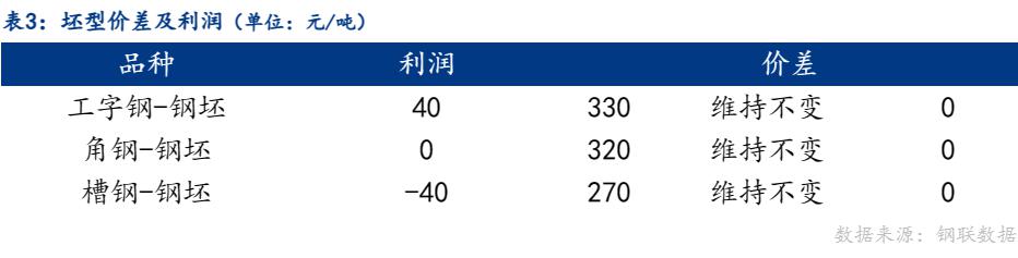 从品种价差来看,今日唐山钢坯与工字钢、角钢、槽钢价差维持不变。