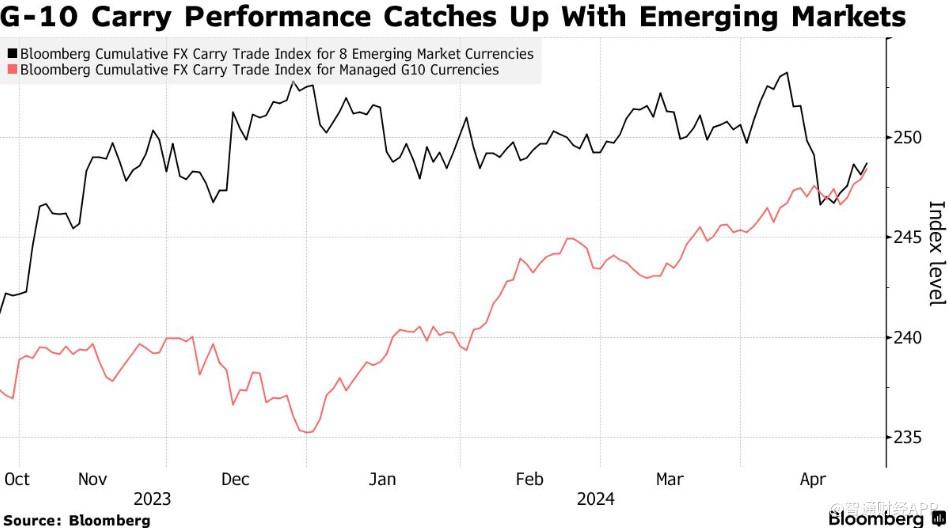 套利交易也加大了十国集团货币的吸引力。追踪十国集团货币套利交易的指标自1月份以来已上涨5.8%,相比之下,追踪8个新兴市场货币的套利交易指标则持平。