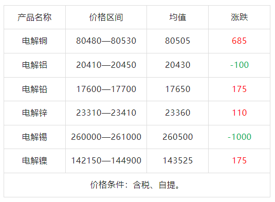 国内现货铜成交区间80480-80530元/吨,较此前价格涨685元/吨,持货商升贴水多对05合约c80-c30元/吨出货。期货盘中拉涨,市场反馈成交情绪一般,涨后出货难度加大。