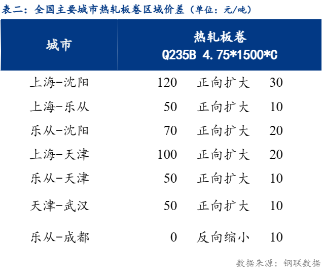 从区域价差来看,华东与东北价差120元/吨,较上一交易日正向扩大30元/吨;华东与华南价差50元/吨,较上一交易日正向扩大10元/吨 ;华南与华北价差为50元/吨,较上一交易日正向扩大10元/吨。