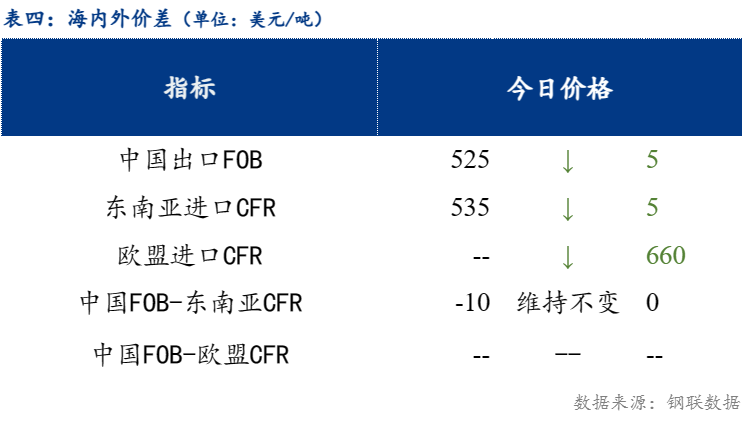 从海内外价差情况来看,中国热卷出口在525美元/吨,较上一交易日下跌5元/吨;欧盟进口价格640美元/吨,较上一交易日持平 。