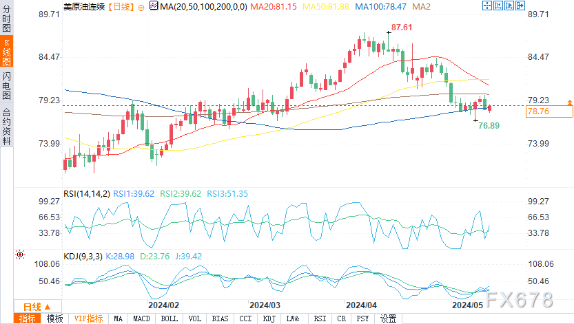 短期波动图显示,79.96美元是向上突破的潜在触发点,而跌破76.89美元将重申下行趋势。