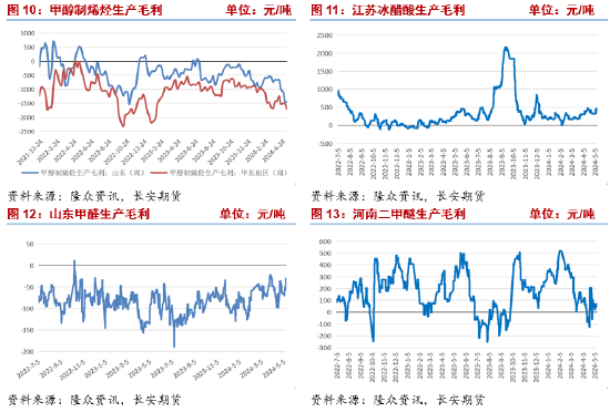 目前甲醇三种制法均有盈利,由于煤价上涨,煤制装置利润有所收缩。