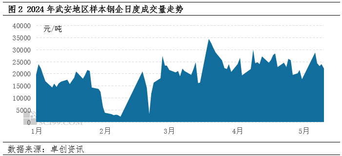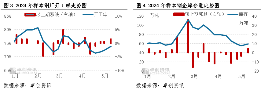 预计5月中下旬需求延续不稳不火状态。春节至今市场需求在经历了两个多月的缓慢恢复后进入到了相对平稳运行阶段,武安地区样本钢企日度成交量基本维持在2.1万-2.5万吨左右(下午四点前);虽然五一节后期螺盘面趋强提振市场成交氛围,且下游企业节后需补库,短期内市场成交有明显增量,但释放后需求再度回归不温不火状态。然而随着5月下旬的临近,部分地区降雨天气或增多,对户外项目施工及运输造成一定干扰,考虑到宏观利多举措不断宽松推进,例如专项债发行逐步、以旧换新政策顺利推进等,基建、汽车、家电等拉丝材的终端消费领域或仍有相对较好支撑,后续对拉丝材产品的需求或有所释放,两相作用下,预计5月中下旬市场需求延续不温不火状态。