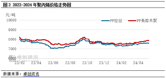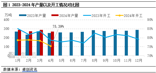 2024年国内PP生产企业开工负荷率多维持在78%左右的相对低位徘徊,而4月PP月度开工负荷率仅在75.39%,为卓创资讯有数据统计以来的历史新低。从产量来看,据卓创资讯数据统计,4月国内PP产量在269.85万吨,环比3月减少6.60%,在一定程度上缓解了供应端的压力,对市场支撑明显。