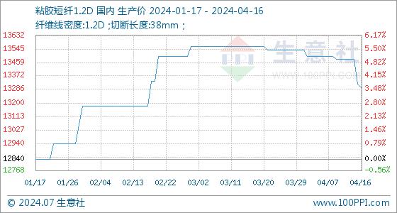4月16日生意社粘胶短纤1.2D基准价为13320.00元/吨