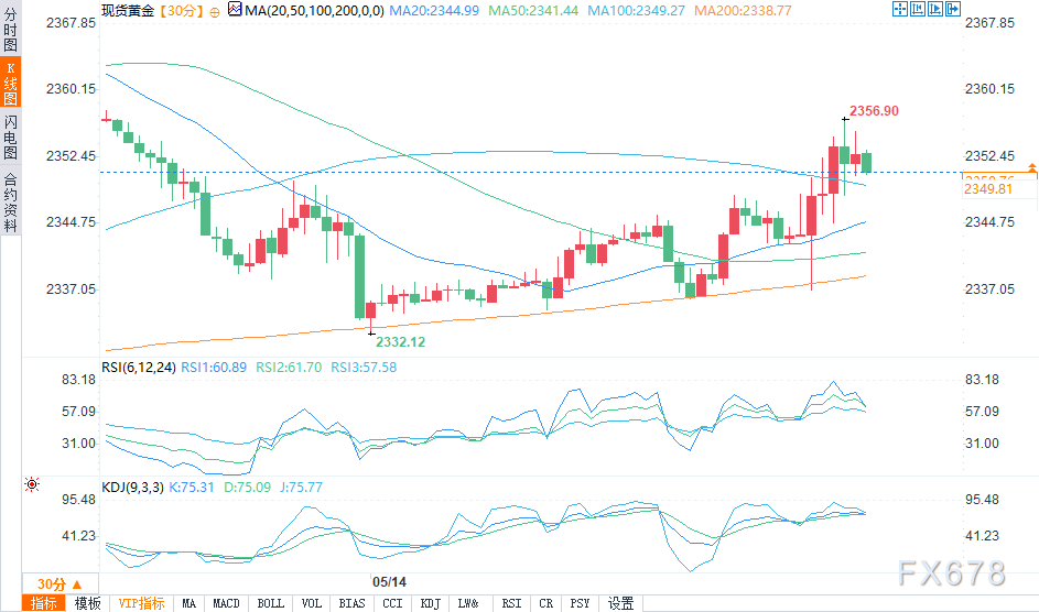 (现货黄金30分钟走势图 图源:易汇通)