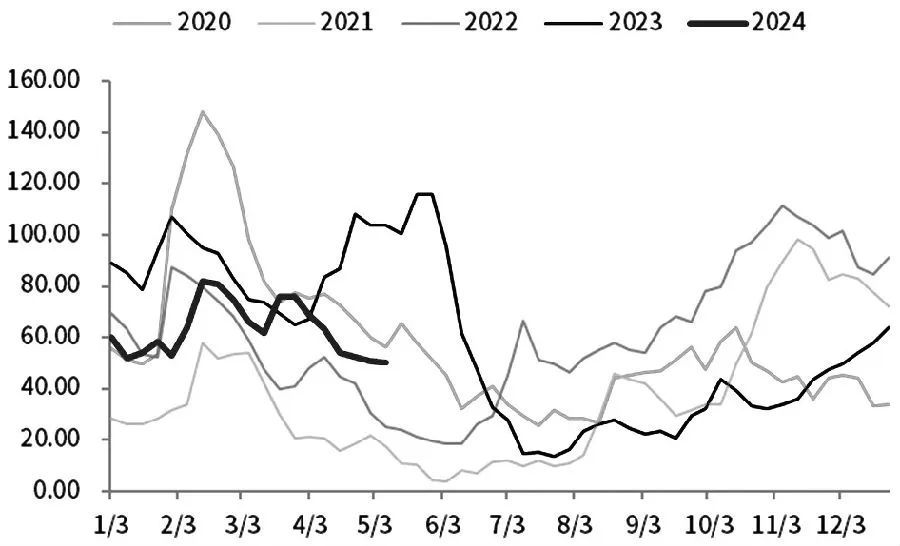 同样的,尿素厂家预收订单在3月中下旬曾一度下降至同期最低水平,不过受到现实需求的支撑,又逐步回升至正常水平。当前尿素厂家的预收订单为6.88天,意味着按照目前日产量计算,厂家未来一周的产量已经被锁定。由于后市存在旺季预期,农业端对尿素的需求会一直持续,厂家的预收订单水平有望维持在一周左右。