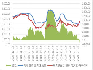 期货方面,从月中开始纯碱的突然强势拉升似乎也超出了基本面范畴,最直接的体现是现货跟涨乏力,盘面持续升水现货。